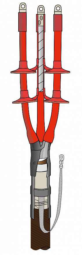Муфта термоусаживаемая концевая наружной установки для кабеля с бумажной изоляцией на напряжение до 10 кВ включительно с непаянным заземлением 3КНТпН-10-150...240 (с наконечниками)
