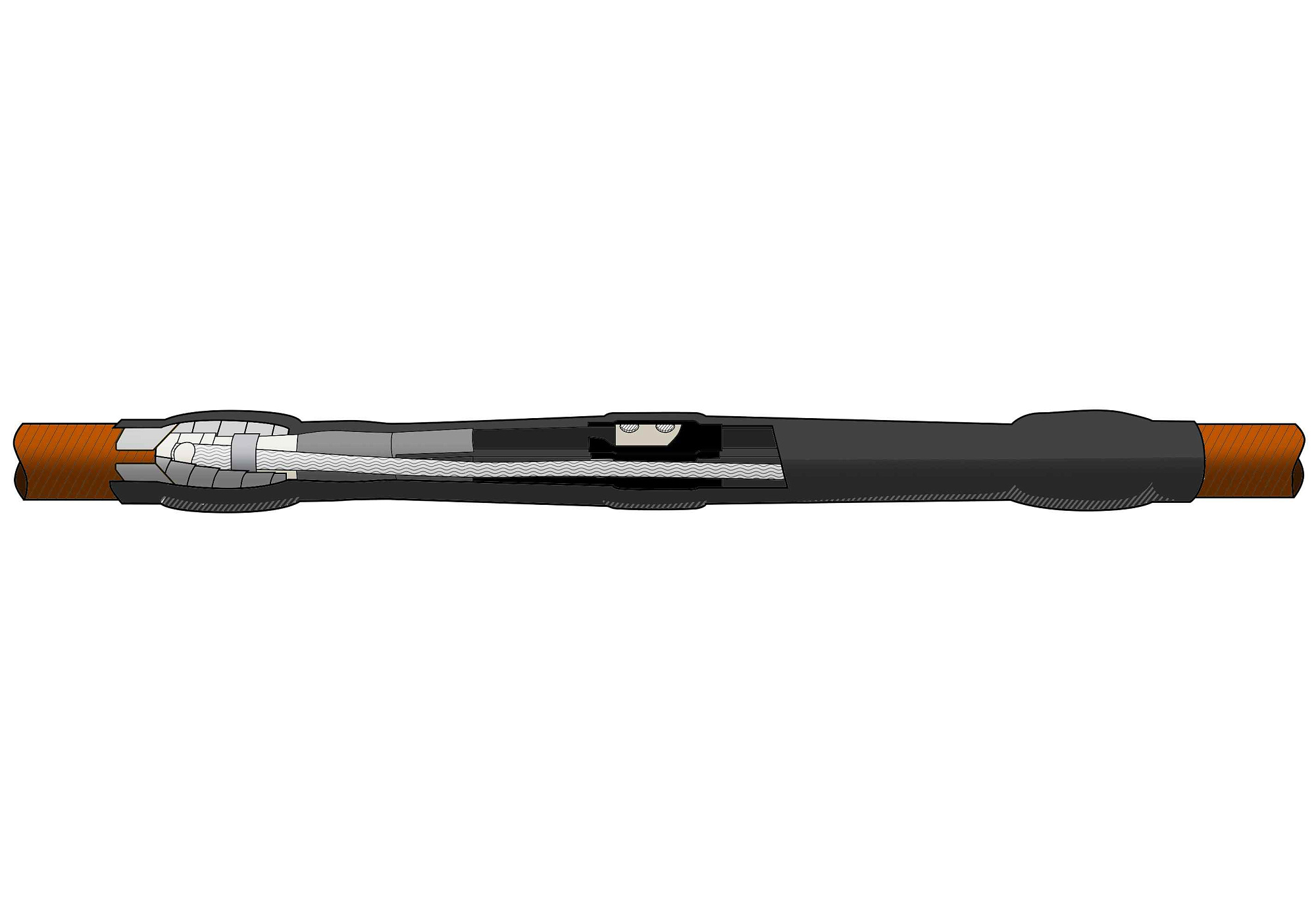 Муфта термоусаживаемая соединительная для кабеля с бумажной изоляцией на напряжение до 1 кВ включительно с не паяным (оболочка) и паяным (броня) заземлением 4СТп-1-16...25