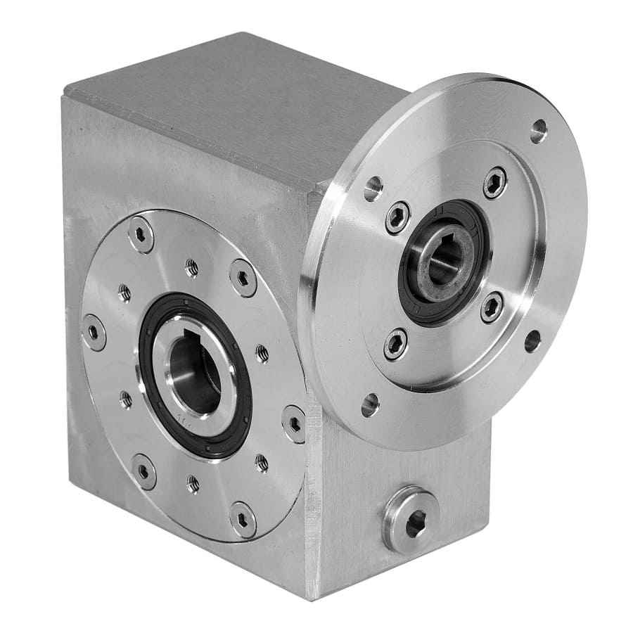 Червячные редукторы из нержавеющей стали в квадратном корпусе выпускаются с межосевым расстоянием 30, 45, 50, 63, 85 и 110 мм. В более широком диапазоне передаваемых моментов доступны стандартные червячные редукторы в антикоррозийном исполнении - выходным валом и болтами из нержавеющей стали, специальной смазкой и окраской корпуса, сальниками Viton.