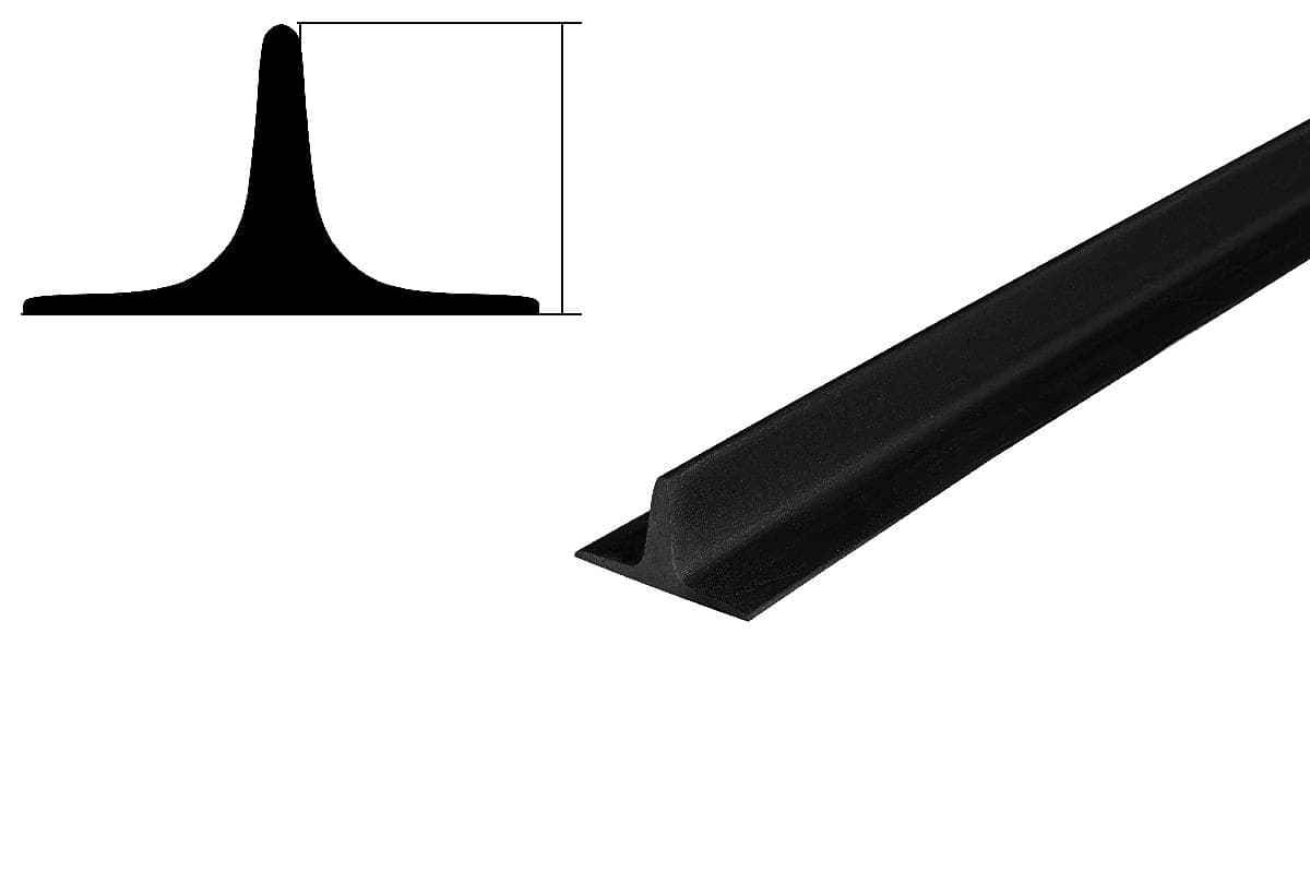 Профиль резиновый используют для установки на ленты в качестве перегородок. Поперечные ребра выполняют роль толкателей, которые служат препятствием для скатывания груза вниз при транспортировке сыпучих материалов на высоту, под углом наклона от 45 до 90 градусов.