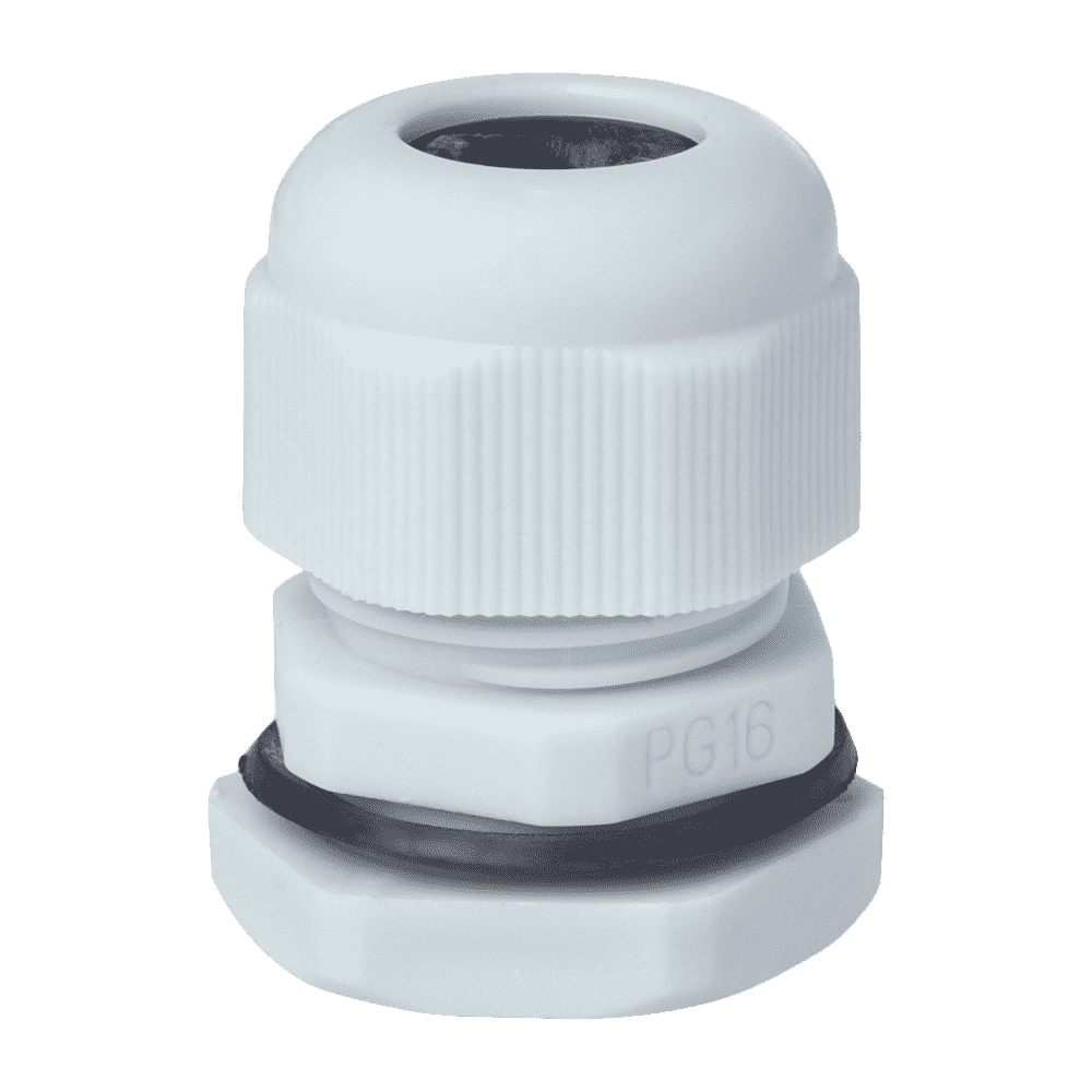 Сальник PG 16 из пластика, предназначенный для защиты соединений проводов и кабелей, обеспечивает степень защиты IP68, что гарантирует защиту от пыли и воды.